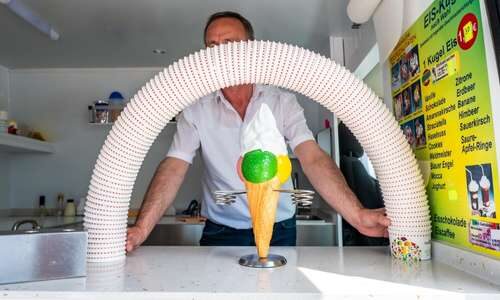 Es können tatsächlich bis zu 1200 Leute mit einem Eiswagen verwöhnt werden. Ca. 5000 Eiskugeln und mehr sind möglich.
